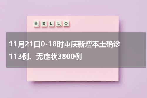 11月21日0-18时,重庆市新增本土确诊病例113例;新增本土无症状感染者3800例;新增阳性待诊断人员3695人。